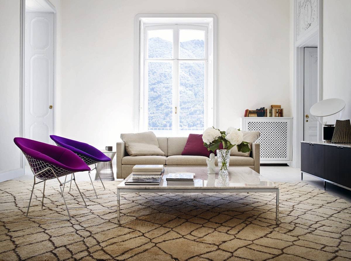 Le sculpteur Harry Bertoia était particulièrement engagé dans le travail des métaux. Collaborant avec Hans et Florence Knoll, ces derniers lui offrirent une liberté totale pour créer ce qui allait devenir l’une des gammes de mobilier les plus acclamées de la marque.