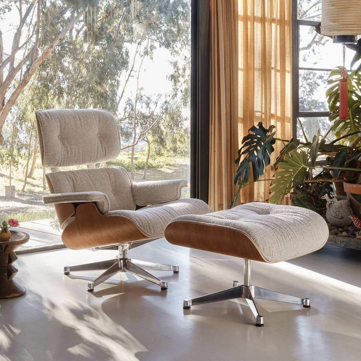 La Lounge Chair revient cette saison sur le devant de la scène avec un tout nouveau revêtement. Cette pièce iconique conçue en 1956 par Charles et Ray Eames se voit réinventée dans un luxueux tissu bouclé appelé Nubia. Cette édition limitée offre une nouvelle expérience tactile et ajoute une dimension chaleureuse au fauteuil, tout en restant fidèle à l'esprit intemporel de cette pièce emblématique.